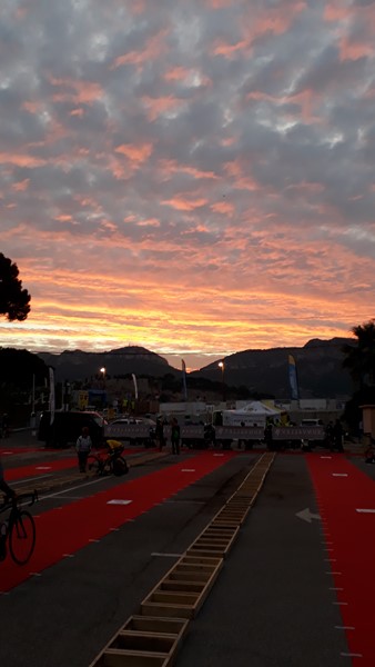 Après un début de we estival partagé en famille à La Ciotat où nous logeons, le samedi après-midi place à la récupération des dossards avec Hugo. Nous y croisons GregTDI et Nico, qui nous annoncent un Rayzin au taquet en reconnaissance sur le parcours vélo!!! .