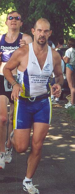 Hervé Pic, premier du club à la sortie de l'eau, gardera la tête jusqu'à la fin... malgré un gros coup de chaleur une fois la ligne d'arrivée franchie. |