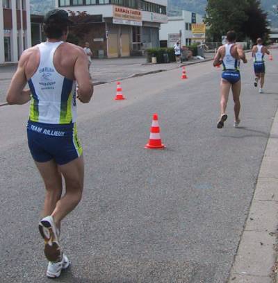 L'équipe 2, en ordre dispersé au départ de la course à pied.